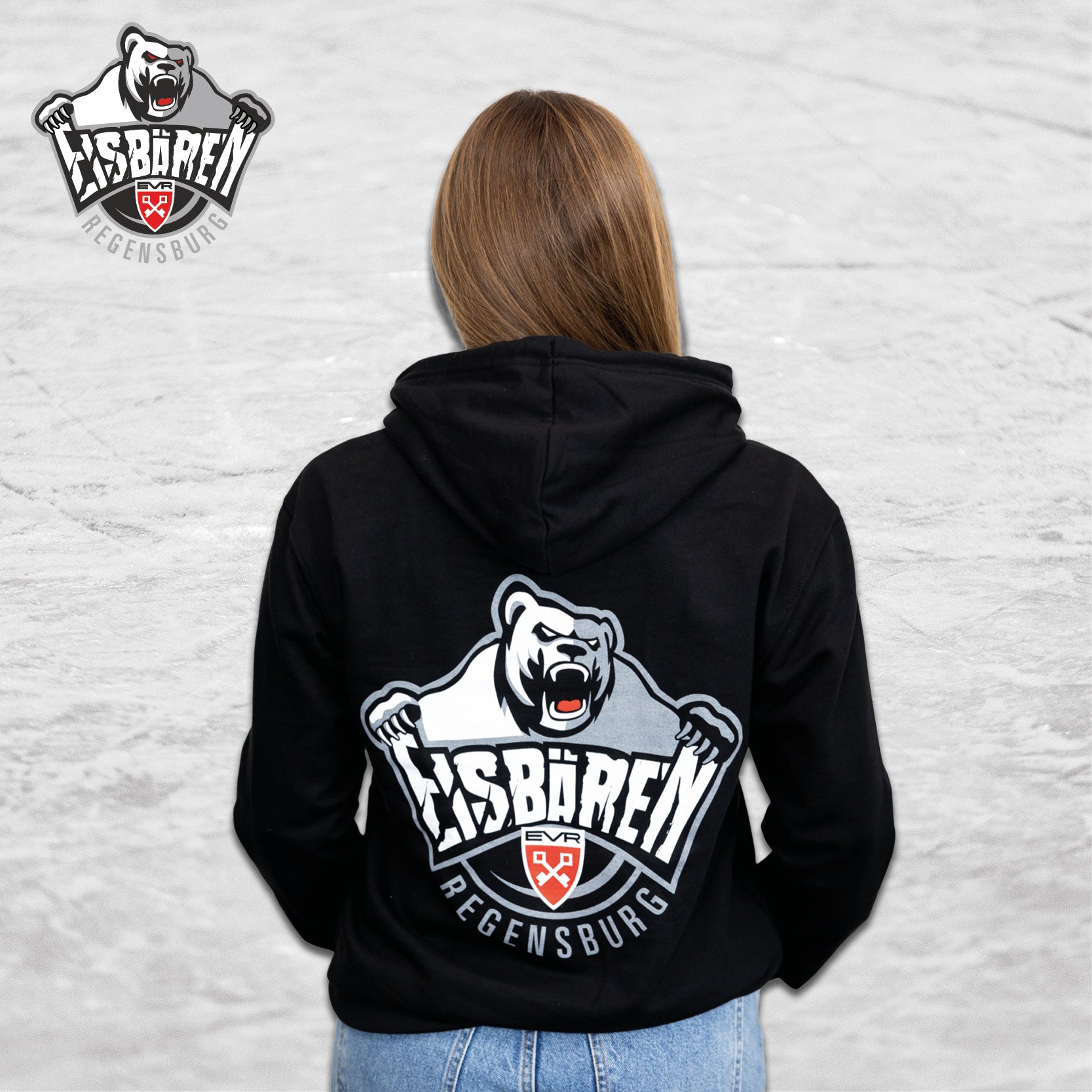 * Rücken mit großem Eisbären Logo als Druck